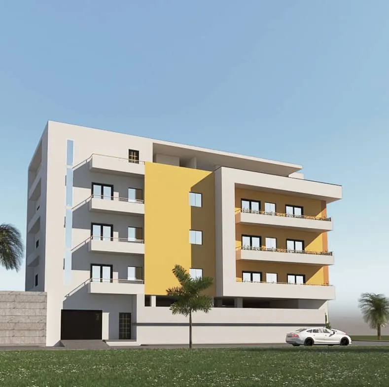 Residential development combining modern apartments with a rooftop swimming pool on the 4th floor, designed and supervised for a private developer in Lomé.