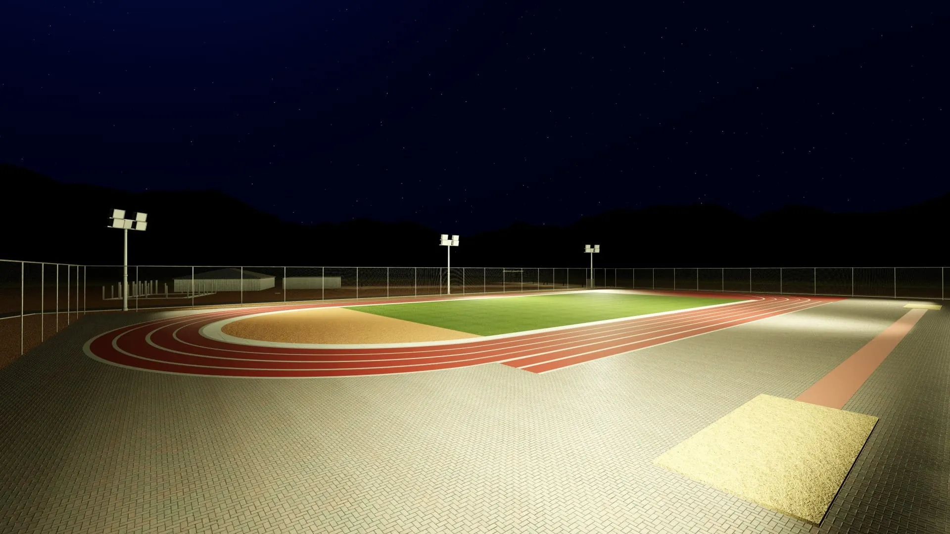 Design and construction of sports facilities with synthetic surfaces (football field, multisport court: basketball, volleyball, and handball), including a rainwater drainage system with a dedicated recovery basin.