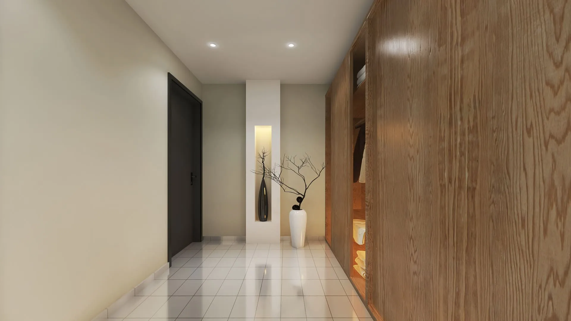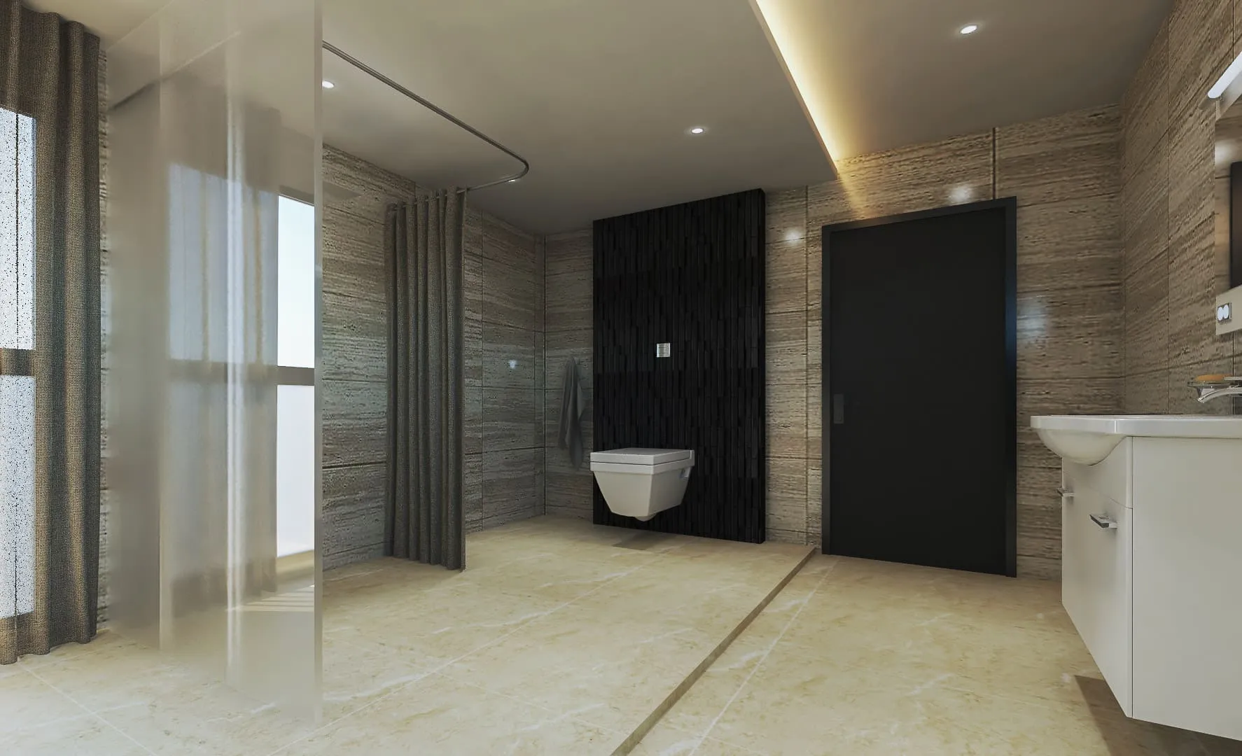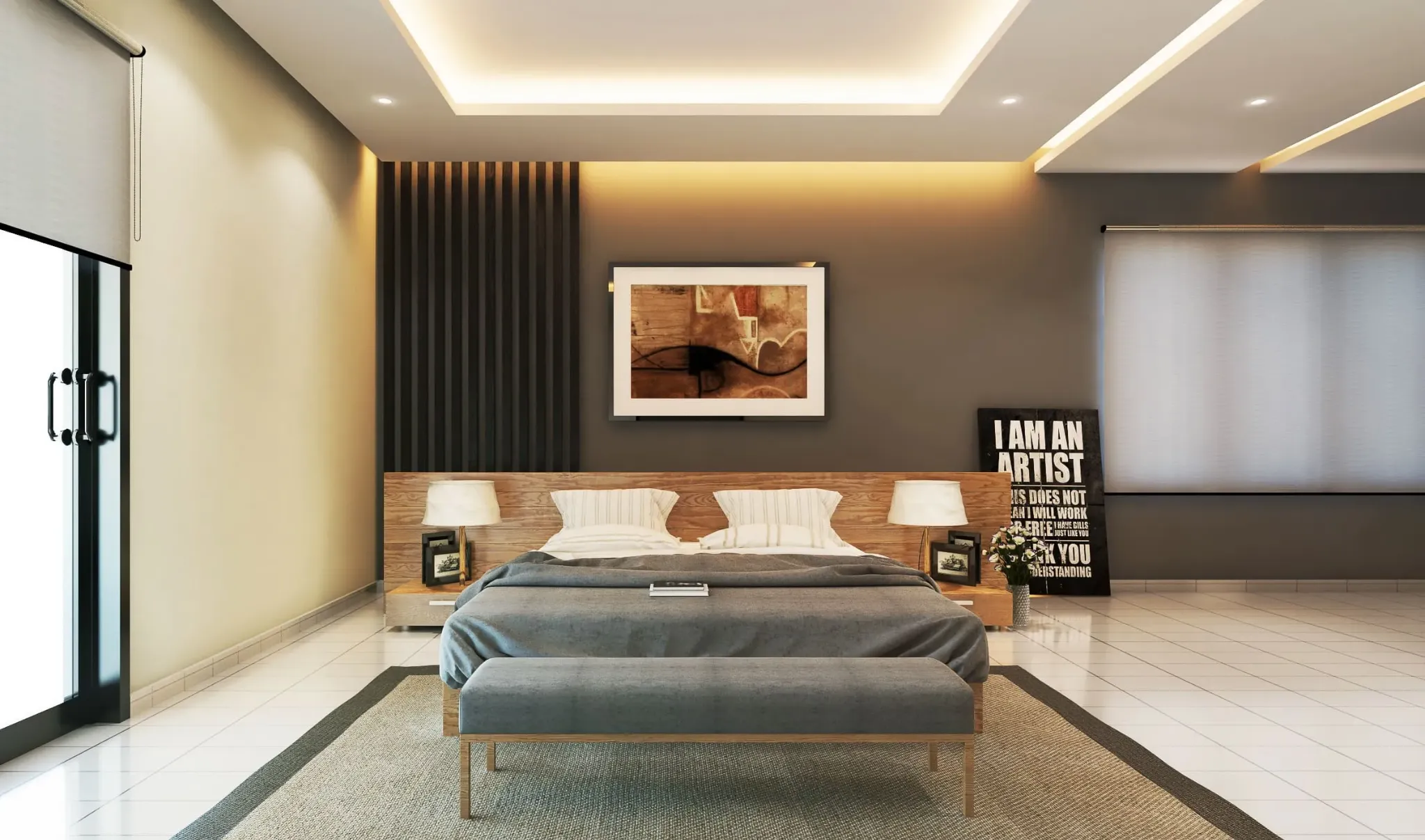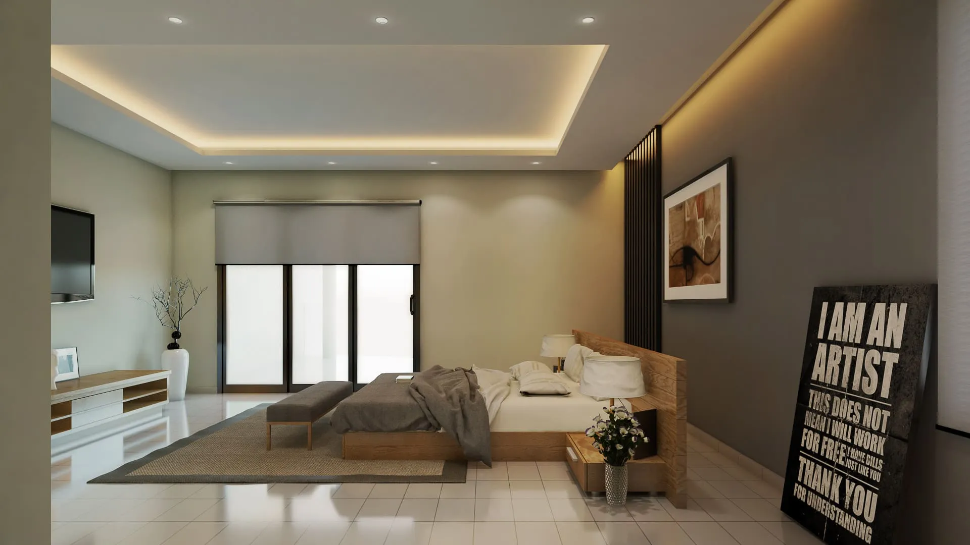 High-end renovation of a 70 m² master suite, redesigned to include a bedroom, dressing area, and bathroom, all enhanced with home automation for voice-activated lighting and blinds.